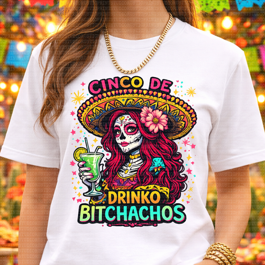 Cinco De Drinko Bitchachos T-Shirt Funny Cinco De Mayo Graphic Tee Unisex